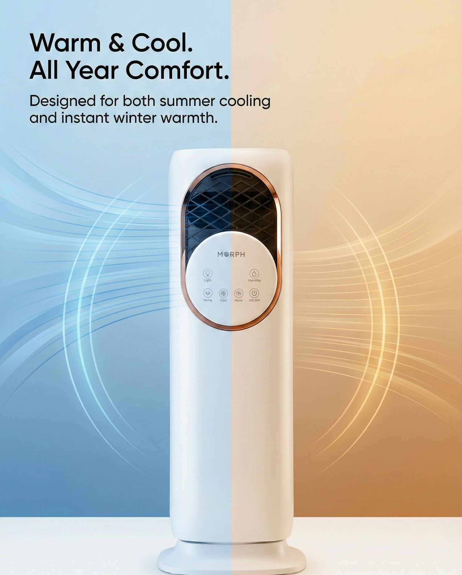 Our philosophy is simple: your environment should respond to you.Engineered with intelligent climate technology and refined minimal design, MORPH brings together smart performance, sustainability, and aesthetic elegance. Every curve, every function is purposefully designed to enhance your space and deliver comfort that feels effortless, every moment.